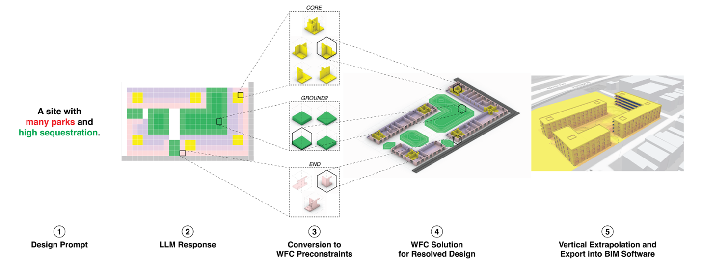 The process of TileGPT begins with a design prompt and ends with a model that can be simulated in Autodesk Forma. To see more about TileGPT, visit the project’s github page at: https://tilegpt.github.io/