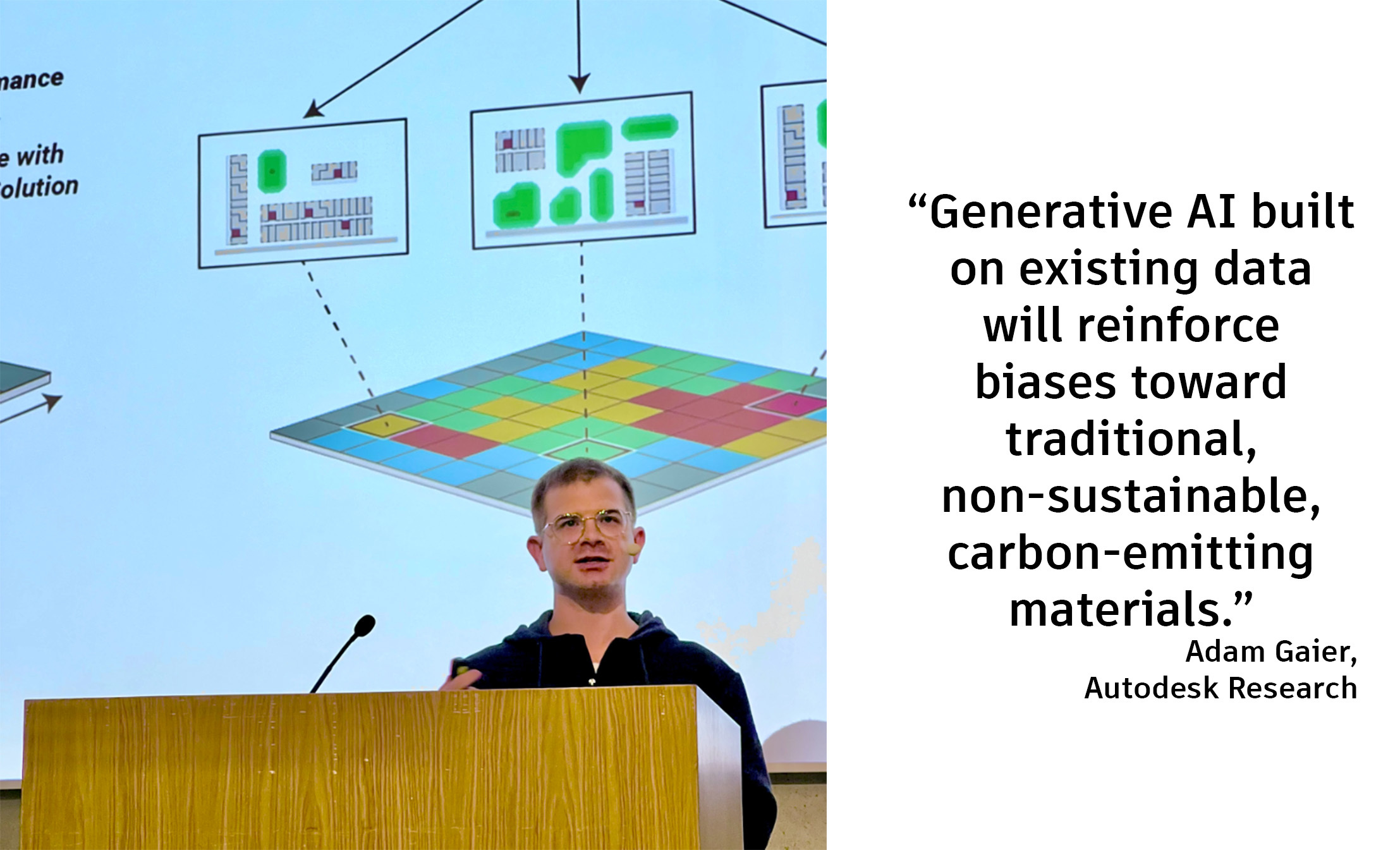 “Human designers often lack intuition on how to use new materials or create sustainable layouts,” says Gaier. “Generative AI built on existing data will reinforce biases toward traditional, non-sustainable, carbon-emitting materials. We need to develop deep knowledge of how these materials behave so that we can be confident enough about our AI suggestions to even offer them.”