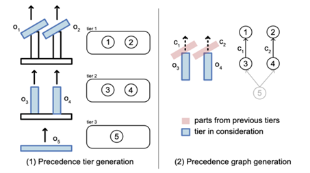 • Plan globally: Compute offline precedence, grasps, and motions that make sense over the entire assembly—not just a single part insertion.