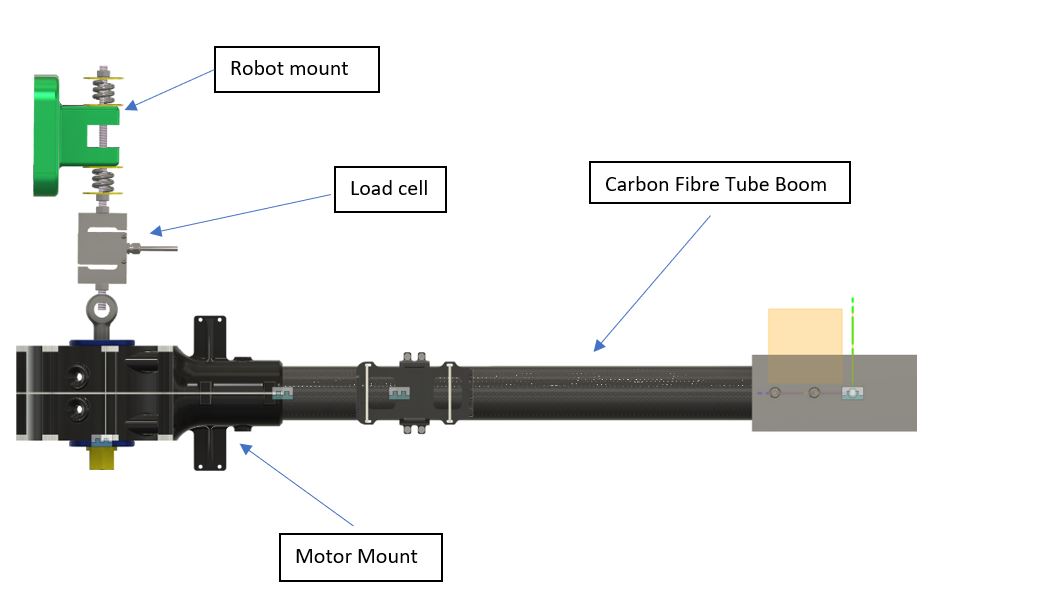 With the mechanical elements designed and manufactured to allow the attachment to the robots external table and sixth axis (the end of the robot arm), an initial test was undertaken. A spring system that interfaced with the end of arm hardware allowed us to reliably and repeatably convert the linear displacement of the robot into a specified force was also added.