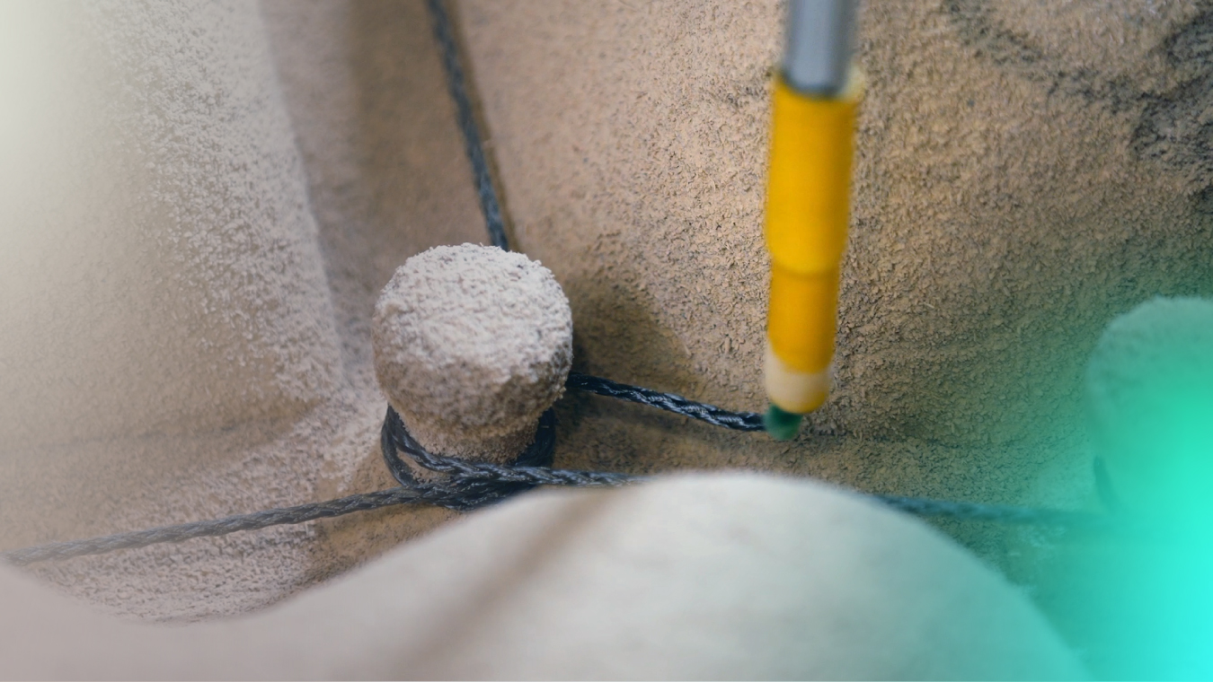 The reinforcement: Rather than rigid and carbon-intensive steel rebar, we explored flexible flax fibers. Structural stress maps were translated in Dynamo into continuous winding paths, allowing robotic placement of fibers within the complex formwork geometry.