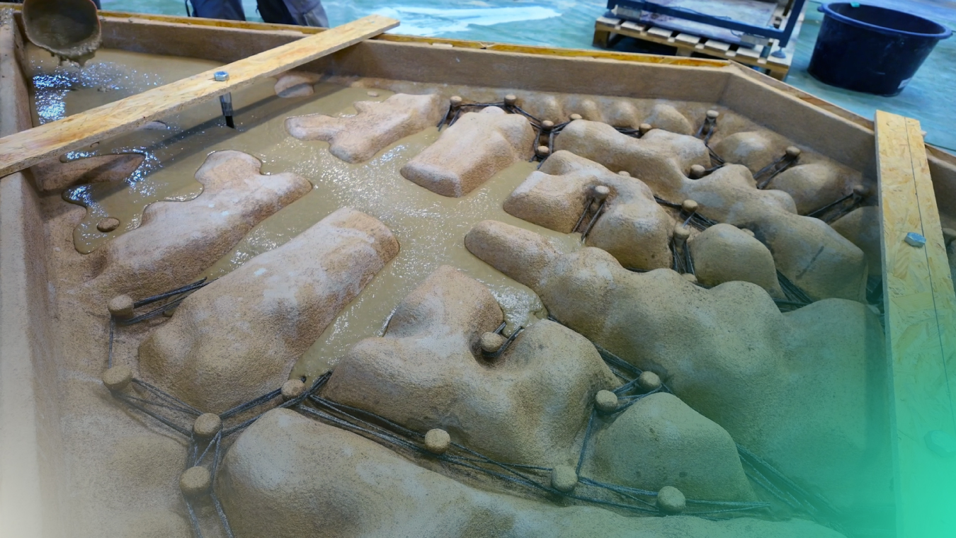 The poured “concrete”: We cast a potassium-activated geopolymer mortar, which bonded seamlessly to flax-fiber reinforcement. Because geopolymers typically don’t pair well with steel, this alternative was a perfect match.