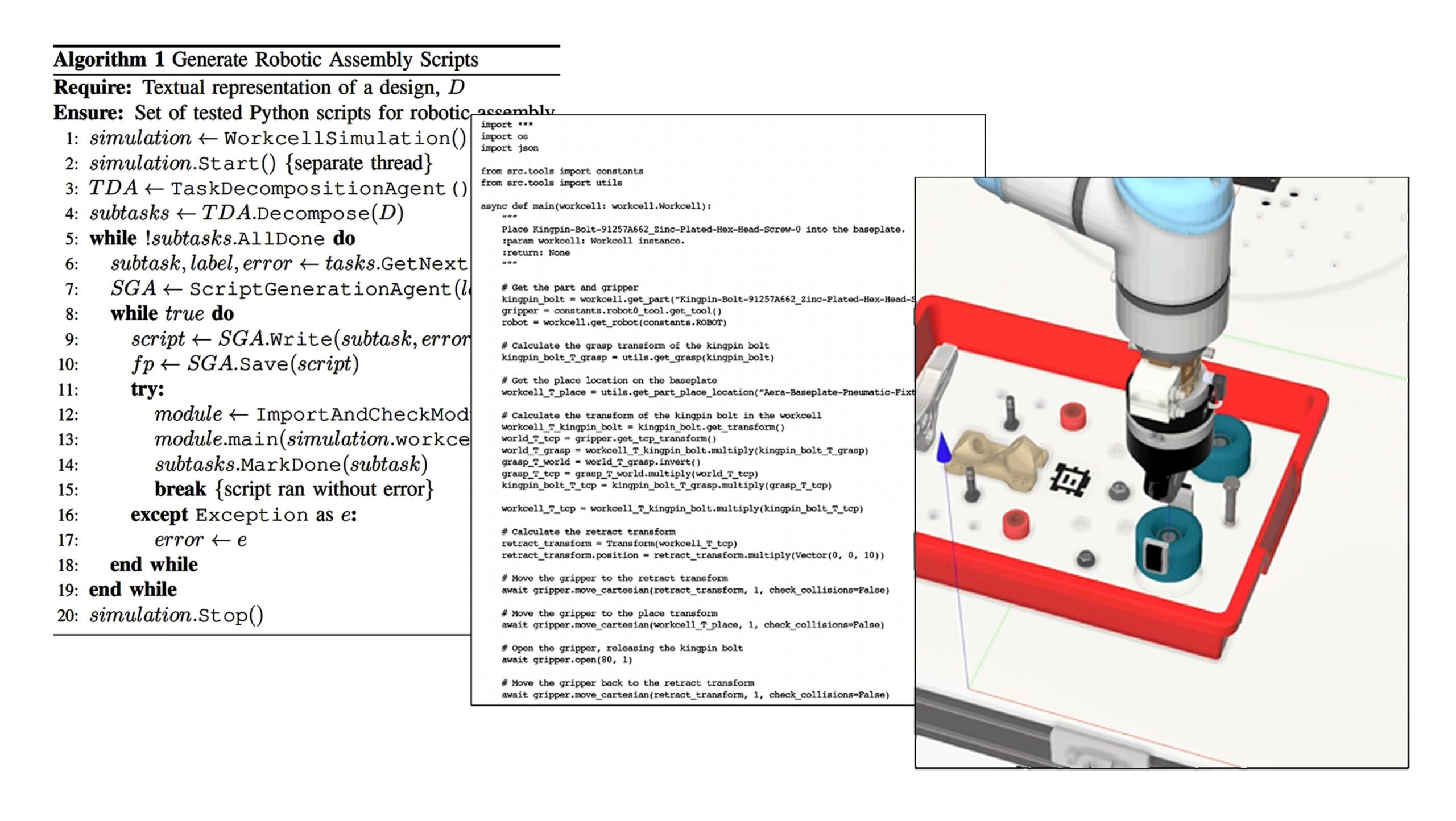 Despite significant technological advancements, the process of programming robots for adaptive assembly remains labor-intensive, demanding expertise in multiple domains and often resulting in task-specific, inflexible code. This work explores the potential of Large Language Models (LLMs), like ChatGPT, to automate this process, leveraging their ability to understand natural language instructions, generalize examples to new tasks, and write code. The team presents a novel system that uses ChatGPT to automate the process of programming robots for adaptive assembly by decomposing complex tasks into simpler subtasks, generating robot control code, executing the code in a simulated workcell, and debugging syntax and control errors, such as collisions. The paper outlines the architecture of this system and strategies for task decomposition and code generation and demonstrates how this system can autonomously program robots for various assembly tasks in a real-world project.