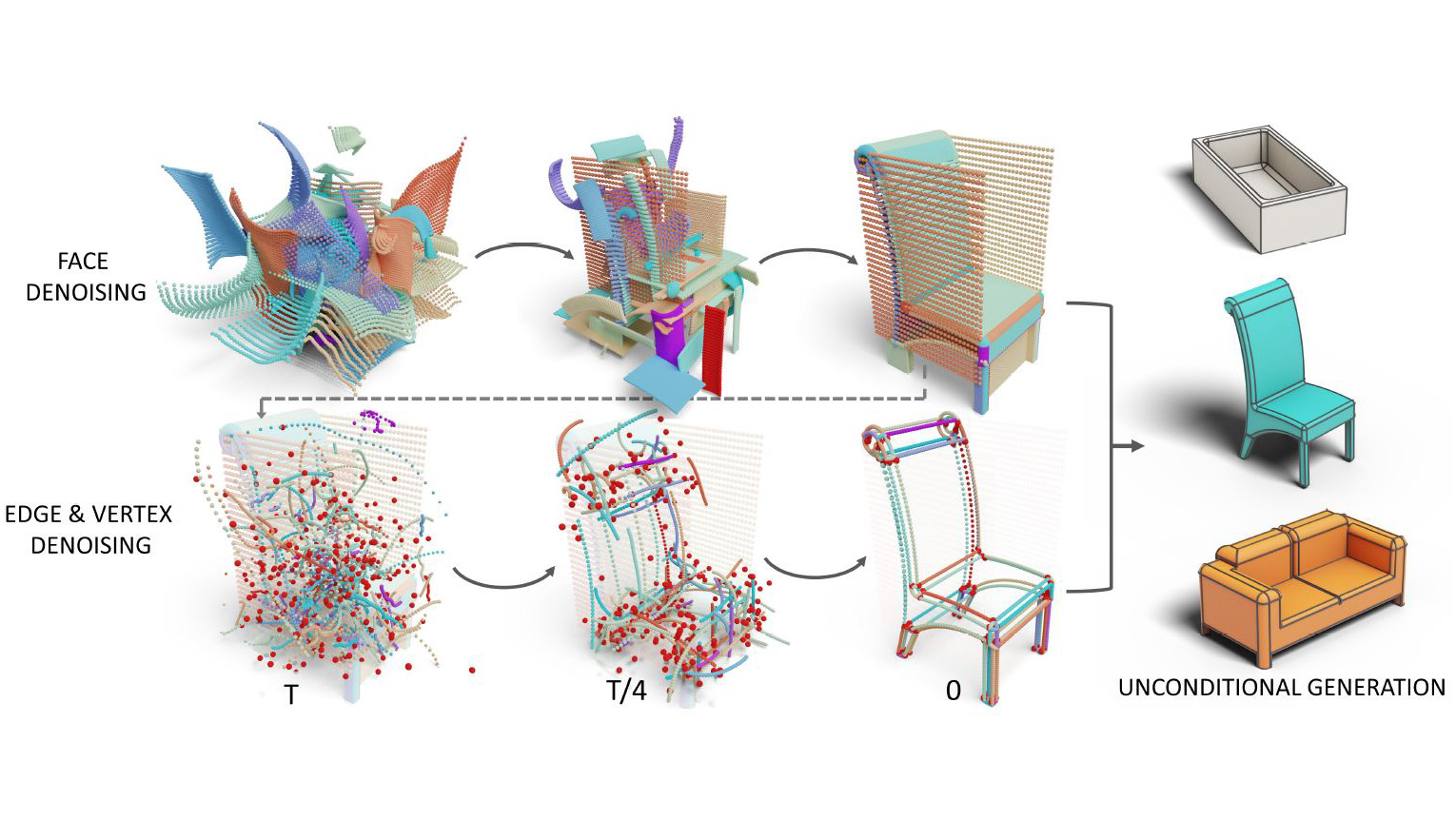 BrepGen is a diffusion-based generative approach that directly outputs a Boundary representation (B-rep) Computer-Aided Design (CAD) model. Extensive experiments show that BrepGen advances the task of CAD B-rep generation, surpassing existing methods on various benchmarks. The team’s work on a newly collected furniture dataset further showcase its exceptional capability in generating complicated geometry. While previous methods were limited to generating simple prismatic shapes, BrepGen incorporates free-form and doubly curved surfaces for the first time. Additional applications of BrepGen include CAD autocomplete and design interpolation.