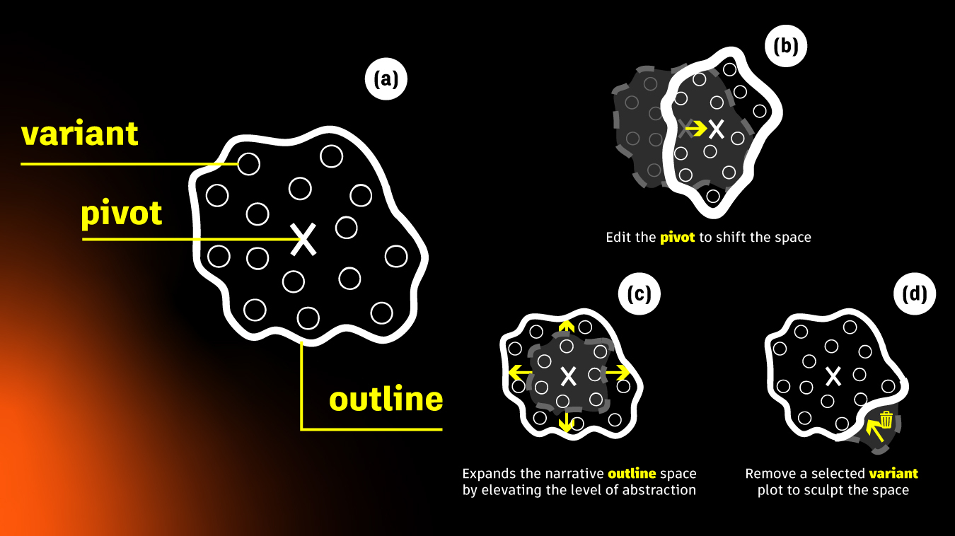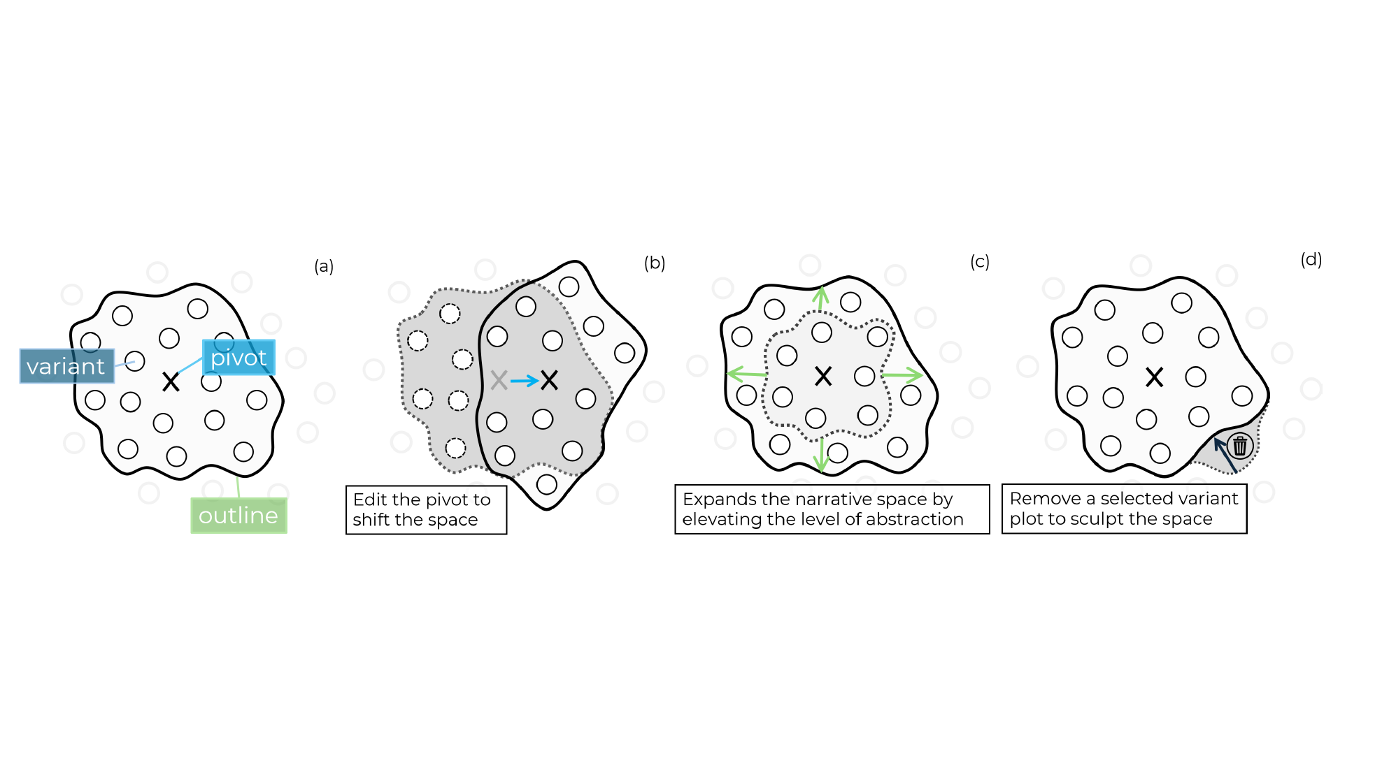 Generative AI significantly enhances player agency in interactive narratives (IN) by enabling just-in-time content generation that adapts to player actions. In this paper, the team presents WhatELSE, an AI-bridged IN authoring system that creates narrative possibility spaces from example stories. WhatELSE provides three views – narrative pivot, outline, and variants – to help authors understand the narrative space and corresponding tools leveraging linguistic abstraction to control the boundaries of the narrative space. Taking innovative LLM-based narrative planning approaches, WhatELSE further unfolds the narrative space into executable game events.