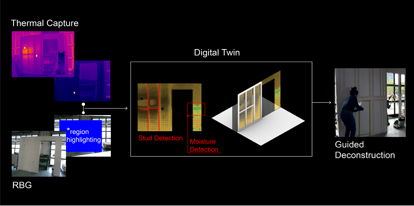 As material scarcity and environmental concerns grow, material reuse and waste reduction are gaining attention based on their potential to reduce carbon emissions and promote net-zero buildings. This study develops an innovative approach that combines multi-modal sensing technologies with machine learning to enable contactless assessment of in situ building materials for reuse potential. This research indicates that contactless assessment and automated deconstruction methods are technically viable, economically advantageous, and environmentally beneficial. Serving as an initial step toward novel methods to view and classify existing building materials, this study lays a foundation for future research, promoting sustainable construction practices that optimize material reuse and reduce negative environmental impact.