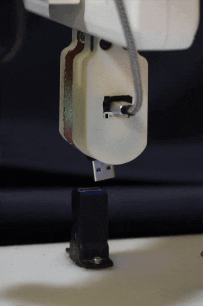 Separating the insertion task into these two phases allows us to formulate the problem in a manner that is safe to learn in comparison to a traditional reinforcement learning (RL) approach where safe exploration is challenging. Incorporating tactile feedback in learning for insertion adds another layer of difficulty because the grasped part frequently slips and rotates due to collision with the environment and the smooth surface of the tactile sensor gel pad. This makes RL methods difficult to succeed without human intervention or an automatic reset mechanism to detect and correct slippage. In this work, we develop a safe, self-supervised data collection pipeline with force-torque sensing, designed to minimize contact force and human input for data collection. This video shows that the robot figures out how it’s holding the USB plug, re-orients it, and finishes insertion.